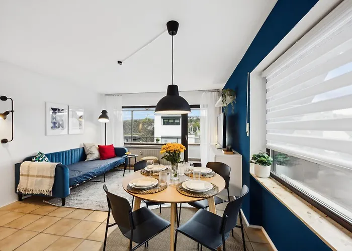 Helle & Moderne Wohnung Mit Panorama-Balkon ligt op 3 km afstand van de Sint-Florinuskerk en beschikt over parkeerplaatsen voor degenen die met de auto reizen. Het appartement van 45 m^2 is gelegen op 4 km van Fort Ehrenbreitstein.